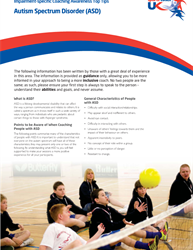 Firstly, here is an impairment-specific coaching awareness top tips sheet (below) that focuses on Autism Spectrum Disorder (ASD).