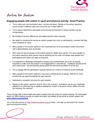 Secondly, The National Autistic Society has produced the information sheet below that offers advice on how you can engage people with Autism in sport and physical activity: