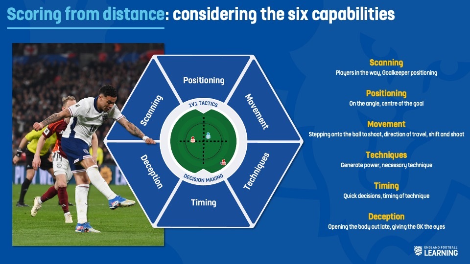 - Encourage your players to practice shooting over different distances from the goal through effective practice design.